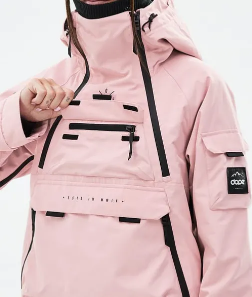 Akin W Snowboardjakke Dame Soft Pink|Akin er alt du noen gang ønsket deg i en jakke, og mye mer. Vi hentet inspirasjon fra old school-jakker og pyntet denne med syv ytterlommer. Aldri bekymre deg igjen med dette fantastiske designet. Bare zip opp, last opp, og gå inn i det store ukjente. Akin er vanntett og isolert nok til å takle det tøffeste været, og er en enkel parkcruiser og en stor fjellknusing. Mic drop, bare så det er sagt.