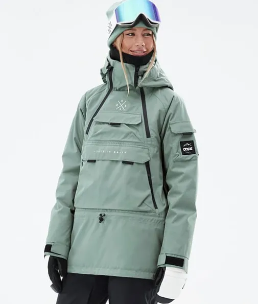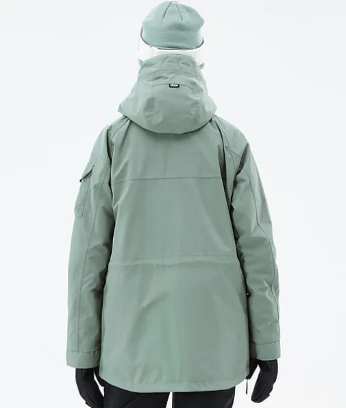 Akin W Snowboardjakke Dame Faded Green|Akin er alt du noen gang ønsket deg i en jakke, og mye mer. Vi hentet inspirasjon fra old school-jakker og pyntet denne med syv ytterlommer. Aldri bekymre deg igjen med dette fantastiske designet. Bare zip opp, last opp, og gå inn i det store ukjente. Akin er vanntett og isolert nok til å takle det tøffeste været, og er en enkel parkcruiser og en stor fjellknusing. Mic drop, bare så det er sagt.