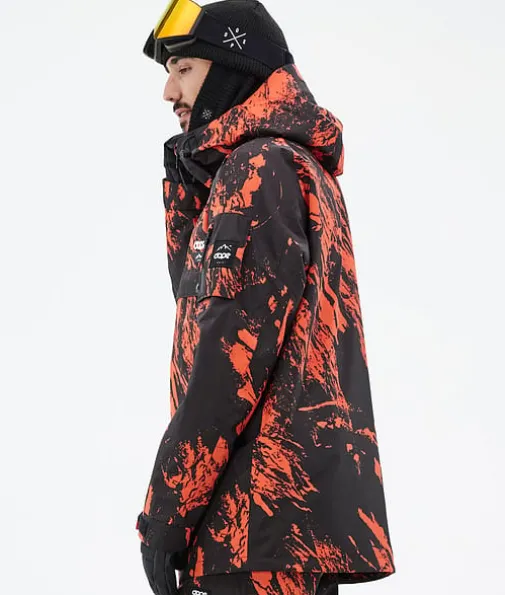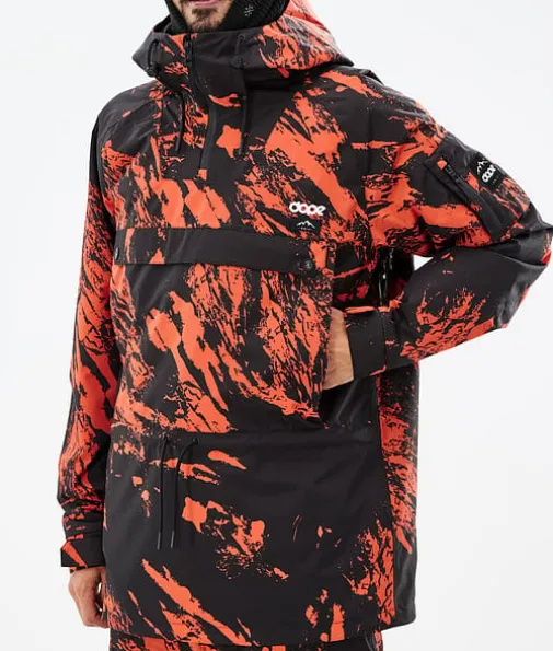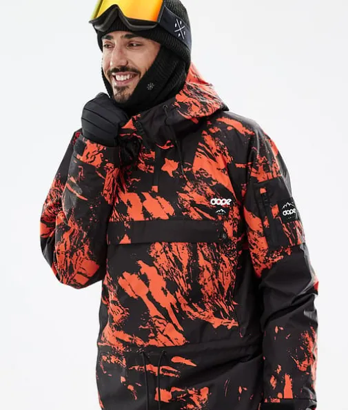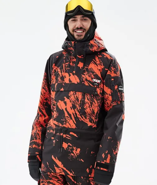 Annok Snowboardjakke Herre Paint Orange|Dopes helt egen signaturstil, Annok stormer tilbake på lager i år for nok en gang å herske over alle andre anorakker. Vi ga den vanntetting og isolering for å takle alt fjellet har å by på, og mange flotte små detaljer som kontraststrenger og trippel lommesystem. Dette gjør Annok til en seriøs street-inspirert anorak som er klar til å yte i både parken og i pudderet, og den ser fantastisk ut.