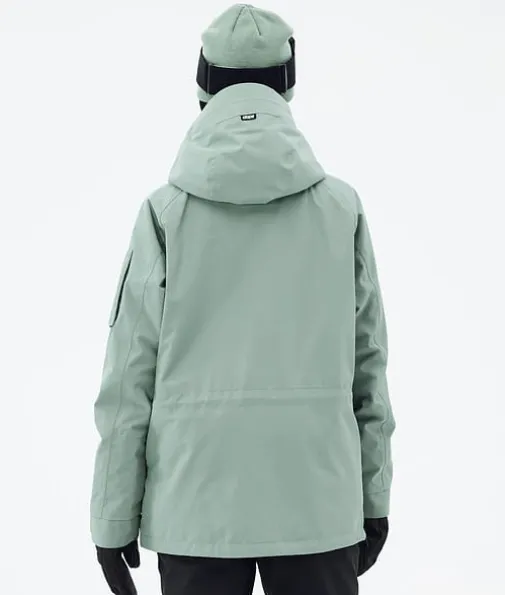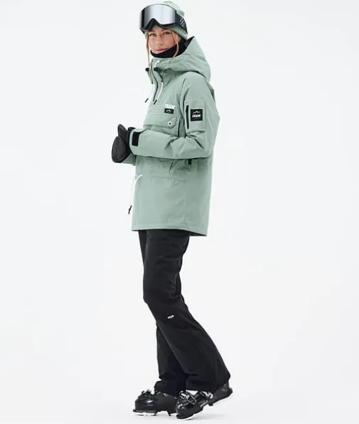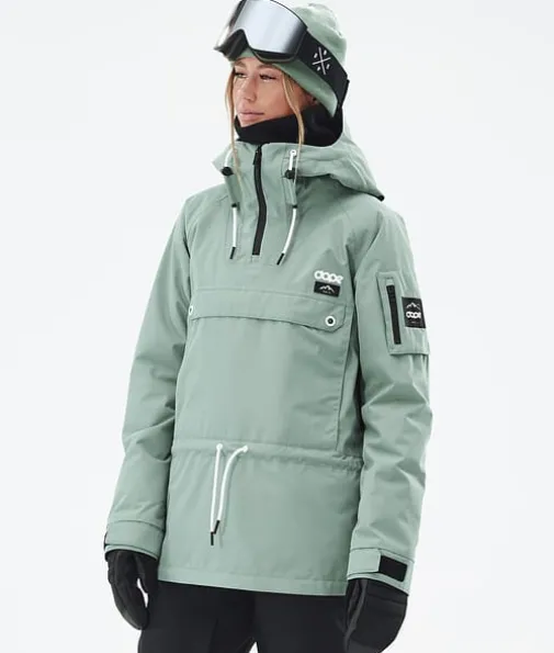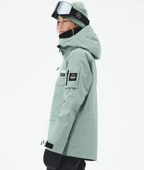 Annok W Skijakke Dame Faded Green|Dopes helt egen signaturstil, Annok stormer tilbake på lager i år for nok en gang å herske over alle andre anorakker. Vi ga den vanntetting og isolering for å takle alt fjellet har å by på, og mange flotte små detaljer som kontraststrenger og trippel lommesystem. Dette gjør Annok til en seriøs street-inspirert anorak som er klar til å yte i både parken og i pudderet, og den ser fantastisk ut.