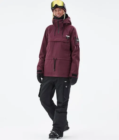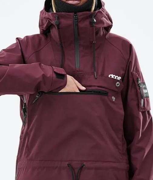 Annok W Skijakke Dame Don Burgundy|Dopes helt egen signaturstil, Annok stormer tilbake på lager i år for nok en gang å herske over alle andre anorakker. Vi ga den vanntetting og isolering for å takle alt fjellet har å by på, og mange flotte små detaljer som kontraststrenger og trippel lommesystem. Dette gjør Annok til en seriøs street-inspirert anorak som er klar til å yte i både parken og i pudderet, og den ser fantastisk ut.
