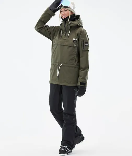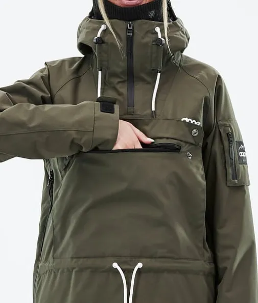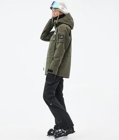 Annok W Skijakke Dame Olive Green|Dopes helt egen signaturstil, Annok stormer tilbake på lager i år for nok en gang å herske over alle andre anorakker. Vi ga den vanntetting og isolering for å takle alt fjellet har å by på, og mange flotte små detaljer som kontraststrenger og trippel lommesystem. Dette gjør Annok til en seriøs street-inspirert anorak som er klar til å yte i både parken og i pudderet, og den ser fantastisk ut.