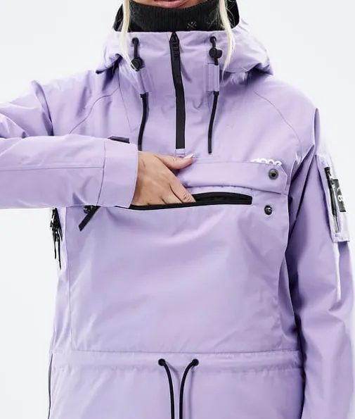 Annok W Skijakke Dame Faded Violet|Dopes helt egen signaturstil, Annok stormer tilbake på lager i år for nok en gang å herske over alle andre anorakker. Vi ga den vanntetting og isolering for å takle alt fjellet har å by på, og mange flotte små detaljer som kontraststrenger og trippel lommesystem. Dette gjør Annok til en seriøs street-inspirert anorak som er klar til å yte i både parken og i pudderet, og den ser fantastisk ut.