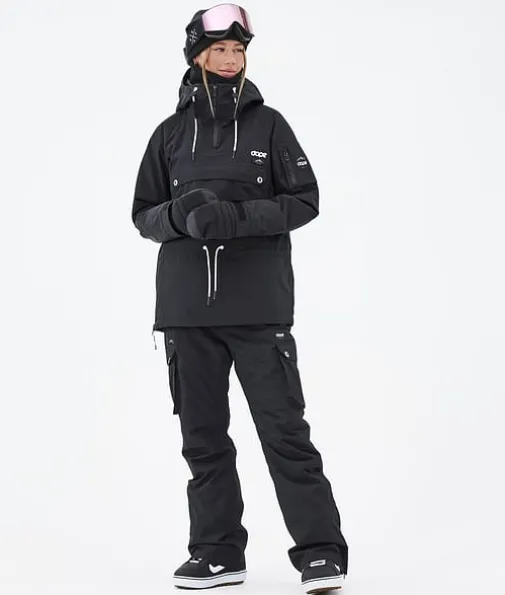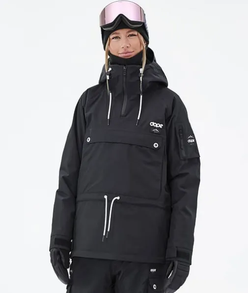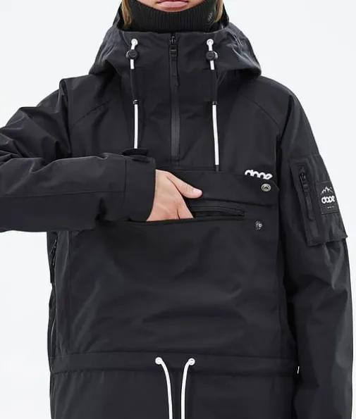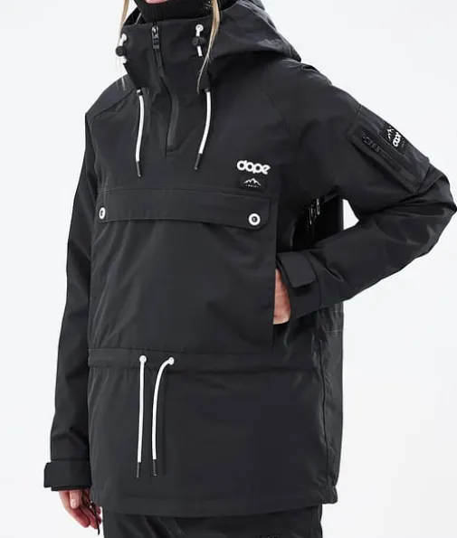 Annok W Snowboardjakke Dame Black|Dopes helt egen signaturstil, Annok stormer tilbake på lager i år for nok en gang å herske over alle andre anorakker. Vi ga den vanntetting og isolering for å takle alt fjellet har å by på, og mange flotte små detaljer som kontraststrenger og trippel lommesystem. Dette gjør Annok til en seriøs street-inspirert anorak som er klar til å yte i både parken og i pudderet, og den ser fantastisk ut.