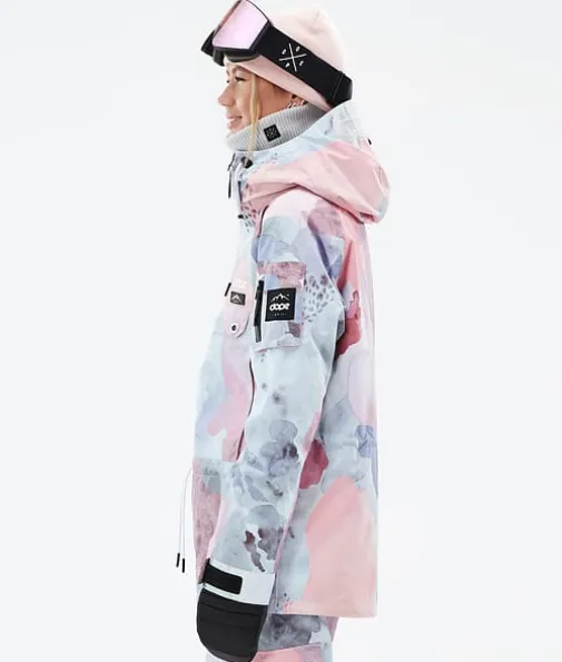 Annok W Snowboardjakke Dame Washed Ink|Dopes helt egen signaturstil, Annok stormer tilbake på lager i år for nok en gang å herske over alle andre anorakker. Vi ga den vanntetting og isolering for å takle alt fjellet har å by på, og mange flotte små detaljer som kontraststrenger og trippel lommesystem. Dette gjør Annok til en seriøs street-inspirert anorak som er klar til å yte i både parken og i pudderet, og den ser fantastisk ut.