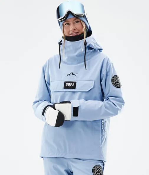 Blizzard W Snowboardjakke Dame Light Blue|Er du på jakt etter den perfekte miksen av hettegenser og skijakke? Da har du kommet til riktig sted! Du vil ha egenskapene og muligheten til å kjøre overalt i fjellet, uten at det blir klumpete. Det er derfor vi har laget Blizzard. Den er fullpakket med alle de viktigste funksjonene og teknologien du trenger for både skibakken og løssnøen, og denne lette og vanntette pullover-jakken er det beste valget for minimalististe kjører som vil ha maks ut av tiden på fjellet. Når du i tillegg får et ekstremt slitesterkt ytterskall med fireveis stretch, har du en kraftpakke av ytelse og komfort, som er meget populær hos både kjørere og team, uansett vær.