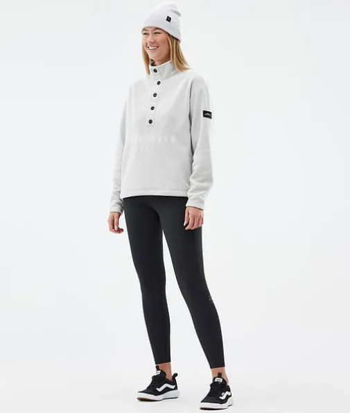 Comfy W Fleecegenser Dame Light Grey/Black|Med Comfy-genseren er du garantert komfort, takket være en fleecekonstruksjon i 250 g/m2 100 % resirkulert polyester som holder på varmen i all slags vær. Med en stilig design med knapper og høy hals er denne fleeceen ideell for å kose seg i bakkene eller slappe av hjemme. Dette supermyke materialet er behagelig mot huden, og de elastiske endelinningene sikrer god passform og varme. Forskjøvede skuldersømmer reduserer friksjon mens du kjører, og kule Dope-detaljer gir ekstra stilpoeng uansett hvor du skal, noe som gjør Comfy til din nye favoritt denne sesongen.