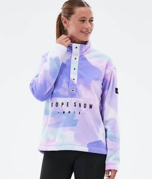 Comfy W Fleecegenser Dame Dreams|Med Comfy-genseren er du garantert komfort, takket være en fleecekonstruksjon i 250 g/m2 100 % resirkulert polyester som holder på varmen i all slags vær. Med en stilig design med knapper og høy hals er denne fleeceen ideell for å kose seg i bakkene eller slappe av hjemme. Dette supermyke materialet er behagelig mot huden, og de elastiske endelinningene sikrer god passform og varme. Forskjøvede skuldersømmer reduserer friksjon mens du kjører, og kule Dope-detaljer gir ekstra stilpoeng uansett hvor du skal, noe som gjør Comfy til din nye favoritt denne sesongen.