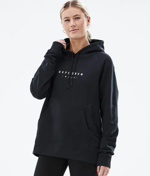 Common W 2022 Hood Dame Range Black|Common-hettegenseren er alt annet enn ordinær. Common-hettegenseren er behagelig, myk og kan brukes til alt, og den er laget av 100 % økologisk bomull med et kraftig 400 g/m² Oekotex 100-sertifisert frottéløkke-fleecestoff for optimal varme og allsidighet hele sesongen. Denne hettegenseren har mange glatte Dope-detaljer, og den er det ultimate innen både stil og bruk. Laget i Portugal.