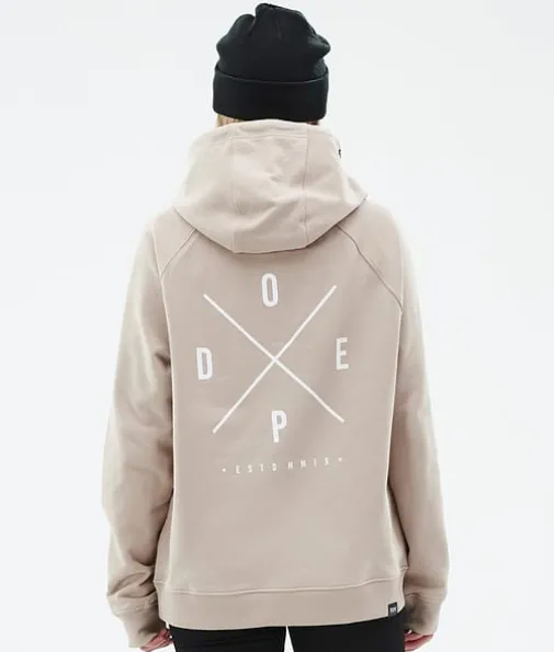 Common W Hood Dame 2X-Up Sand|Common-hettegenseren er alt annet enn ordinær. Common-hettegenseren er behagelig, myk og kan brukes til alt, og den er laget av 100 % økologisk bomull med et kraftig 400 g/m² Oekotex 100-sertifisert frottéløkke-fleecestoff for optimal varme og allsidighet hele sesongen. Denne hettegenseren har mange glatte Dope-detaljer, og den er det ultimate innen både stil og bruk.