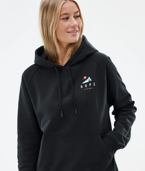 Common W Hood Dame Ice Black|Common-hettegenseren er alt annet enn ordinær. Common-hettegenseren er behagelig, myk og kan brukes til alt, og den er laget av 100 % økologisk bomull med et kraftig 400 g/m² Oekotex 100-sertifisert frottéløkke-fleecestoff for optimal varme og allsidighet hele sesongen. Denne hettegenseren har mange glatte Dope-detaljer, og den er det ultimate innen både stil og bruk.