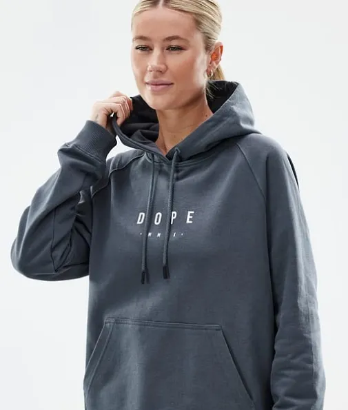 Common W Hood Dame Aphex Metal Blue|Common-hettegenseren er alt annet enn ordinær. Common-hettegenseren er behagelig, myk og kan brukes til alt, og den er laget av 100 % økologisk bomull med et kraftig 400 g/m² Oekotex 100-sertifisert frottéløkke-fleecestoff for optimal varme og allsidighet hele sesongen. Denne hettegenseren har mange glatte Dope-detaljer, og den er det ultimate innen både stil og bruk.