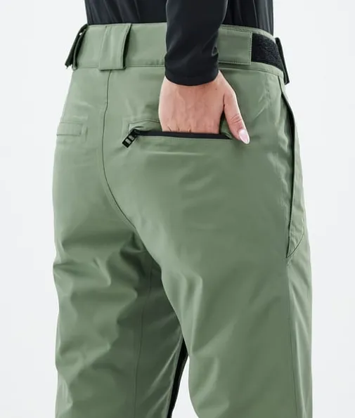 Con W Skibukse Dame Moss Green|Con-buksene blander form og funksjon på en perfekt måte, og det er gode grunner til at de er en favoritt for teamet og rytterne. Denne buksen er spesiell fordi den ikke bare har den smale, ettersittende passformen du har ønsket deg, men er også superkomfortabel og gir total bevegelsesfrihet takket være det forbedrede toveis stretch-skallmaterialet. Så du får fortsatt den smale profilen, men uten å hale og dra i stoffet, noe som gjør Con til det optimale paret med slimfit-bukser for fjellet.