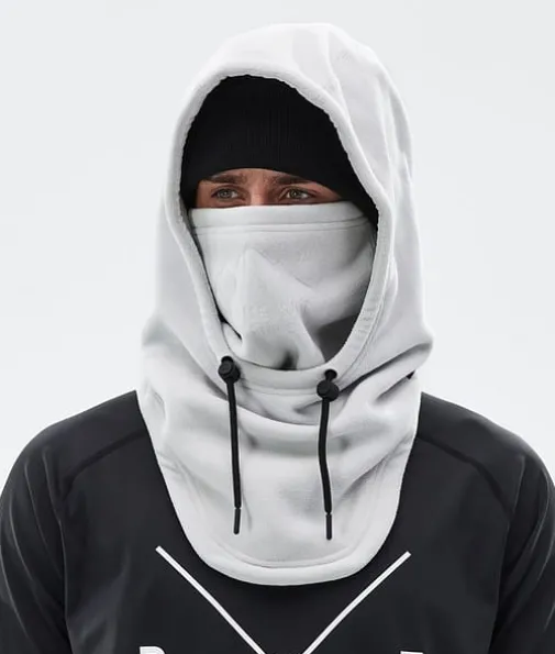 Cozy Hood II Ansiktsmasker Light Grey|Cozy Hood fra Dope er en revolusjon innen halsvarmere. Den er laget av en supermyk 300 g/m2 polyestermikrofleece, noe som holder deg varm hele dagen lang. Det er en hette kombinert med halstube som du kan trekke ned når du trenger litt luft, og med justeringssnorer på hetten slik at du kan få perfekt passform, er denne halsvarmeren mer allsidig enn du skulle tro. Men hva med hjelm, tenker du kanskje? Du kan være trygg på at vi har laget disse halsvarmerne med hjelm i tankene. Du trekker den bare opp over hjelmen. Ha den nede rundt halsen når du kjører rolig, og trekk den opp når du skal kjøre røft. Cozy Hood er en all-mountain halsvarmer som ser bra ut og føles enda bedre.