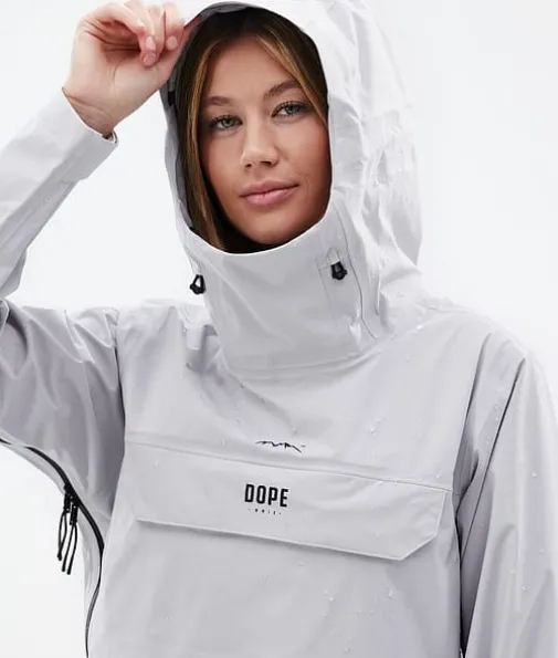 Downpour W Regnjakke Dame Light Grey|Downpour-jakken er et nytt innslag i Dope-serien, som benytter seg av vårt fantastiske, fjærlette stoff i tre lag. Jakken er designet med innovativ fireveis stretch, og er den mest nedpakkbare, pålitelige og mobilitetsfokuserte jakken i serien. Når du trenger en jakke du kan stole på i all slags vær, og en som ikke tar opp plass i sekken, er Downpour klar til å oppfylle.