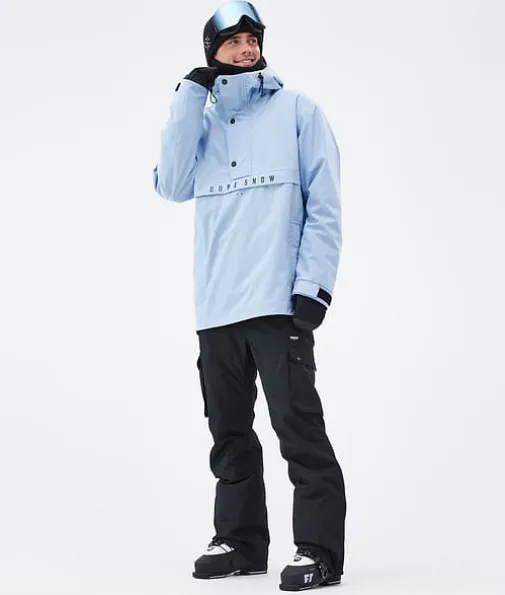 Legacy Skijakke Herre Light Blue|Legacy kaster blikket tilbake til 90-tallet og kombinerer en løs anorakkpassform med tekniske kvaliteter fra avanserte skijakker. Den er laget med tanke på rolige økter og er lett å kaste på eller av når det passer. Når du ikke trenger fancy og klumpete skijakkefunksjoner som glidelåser er Legacy jakken perfekt. Nå som den også har det utrolig sliitesterke skallet med fireveis stretch kan du være trygg på at Legacy gjør inntrykk der du ferdes.