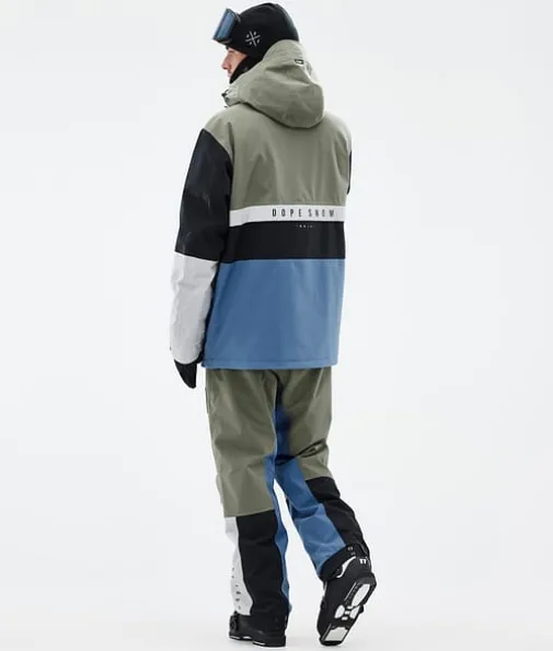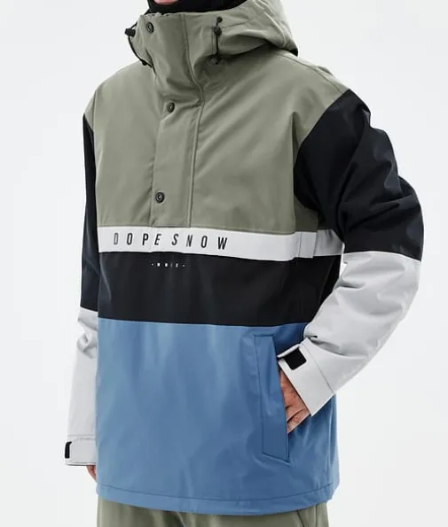 Legacy Track Skijakke Herre Greenish/Light Grey/Black/Blue Steel|Legacy kaster blikket tilbake til 90-tallet og kombinerer en løs anorakkpassform med tekniske kvaliteter fra avanserte skijakker. Den er laget med tanke på rolige økter og er lett å kaste på eller av når det passer. Når du ikke trenger fancy og klumpete skijakkefunksjoner som glidelåser er Legacy jakken for deg. Nå som den også har det utrolig slitesterke skallet med fireveis stretch, kan du være trygg på at Legacy gjør inntrykk der du ferdes.