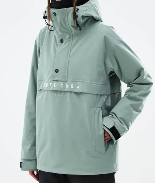 Legacy W Snowboardjakke Dame Faded Green|Legacy kaster blikket tilbake til 90-tallet og kombinerer en løs anorakkpassform med tekniske kvaliteter fra avanserte skijakker. Den er laget med tanke på rolige økter og er lett å kaste på eller av når det passer. Når du ikke trenger fancy og klumpete skijakkefunksjoner som glidelåser er Legacy jakken perfekt. Nå som den også har det utrolig sliitesterke skallet med fireveis stretch kan du være trygg på at Legacy gjør inntrykk der du ferdes.