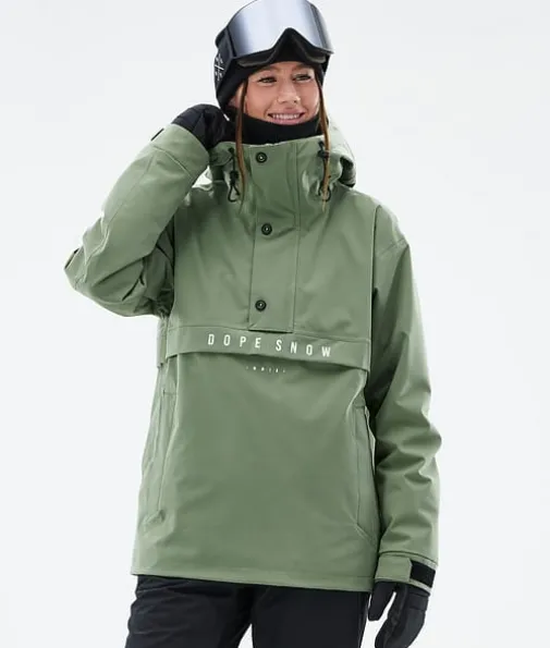 Legacy W Snowboardjakke Dame Moss Green|Legacy kaster blikket tilbake til 90-tallet og kombinerer en løs anorakkpassform med tekniske kvaliteter fra avanserte skijakker. Den er laget med tanke på rolige økter og er lett å kaste på eller av når det passer. Når du ikke trenger fancy og klumpete skijakkefunksjoner som glidelåser er Legacy jakken perfekt. Nå som den også har det utrolig sliitesterke skallet med fireveis stretch kan du være trygg på at Legacy gjør inntrykk der du ferdes.