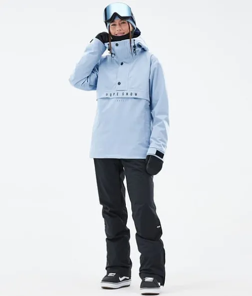 Legacy W Snowboardjakke Dame Light Blue|Legacy kaster blikket tilbake til 90-tallet og kombinerer en løs anorakkpassform med tekniske kvaliteter fra avanserte skijakker. Den er laget med tanke på rolige økter og er lett å kaste på eller av når det passer. Når du ikke trenger fancy og klumpete skijakkefunksjoner som glidelåser er Legacy jakken perfekt. Nå som den også har det utrolig sliitesterke skallet med fireveis stretch kan du være trygg på at Legacy gjør inntrykk der du ferdes.