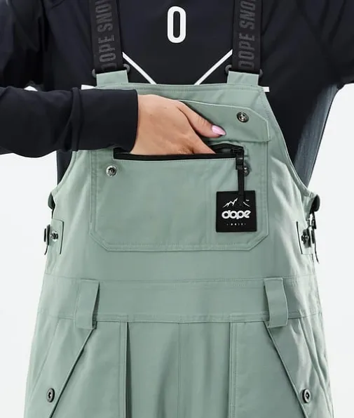 Notorious B.I.B W Snowboardbukse Dame Faded Green|Legg litt Notorious bib til kjøringen din. Den veker oppmerksomhet, er utstyrt med den nyeste teknologien for å holde deg varm og komfortabel hele dagen. Med superglatt, slouchy stil som oser av steeze, og vanntetting som vil sette en hvalross i dårlig lys, er den beryktede biben en all-mountain slayer. Og med en sinnsykt behagelig avslappet passform, uslåelig holdbarhet og mye lagringsplass, vil vi ikke klandre deg hvis du aldri tok den av. Vi vet at vi ikke har gjort det!