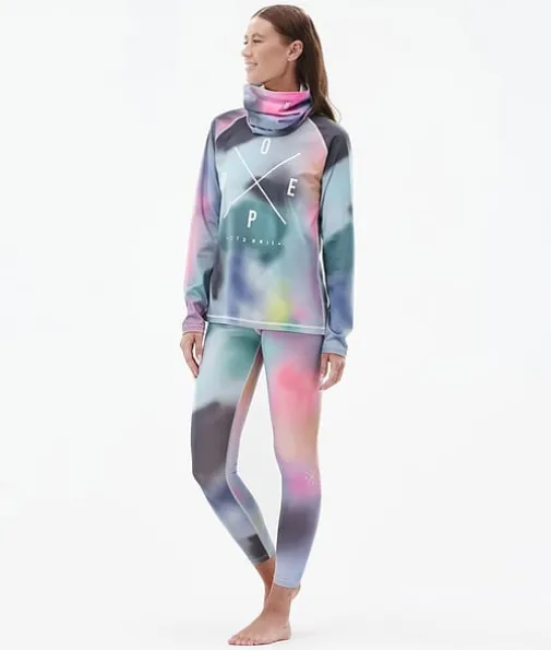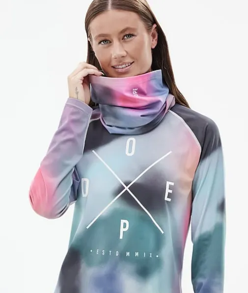 Snuggle W Superundertøy overdel Dame 2X-Up Aurora|En ny generasjon med Snuggle-superundertøy er den perfekte følgesvennen når du skal ut på vintereventyr. Snuggle er laget med en ekstremt stretchy blanding av spandex og polyester, som puster svært godt, og Anti-Odour HeiQ-teknologi. Snuggle er klar for selv de mest aktive dagene på fjellet. Den har en minimal turtleneck-krage for å holde bedre på varmen i kaldt vær, og en ekstra separat halsvarmer som gir optimal allsidighet, så du kan holde deg varm og god eller lett og luftig. Den er nå utstyrt med et forbedret Peached-lag som gir uslåelig komfort, i tillegg til forsterkede flate sømmer som eliminerer gnaging og gir ekstrem slitestyrke. Snuggle-superundertøy er utviklet over flere år, og resultatet er det mest komfortable og funksjonelle du kan få tak i: ut på fjellet hver dag, hele sesongen, og vær fullstendig komfortabel.