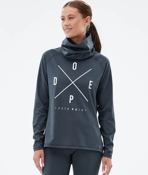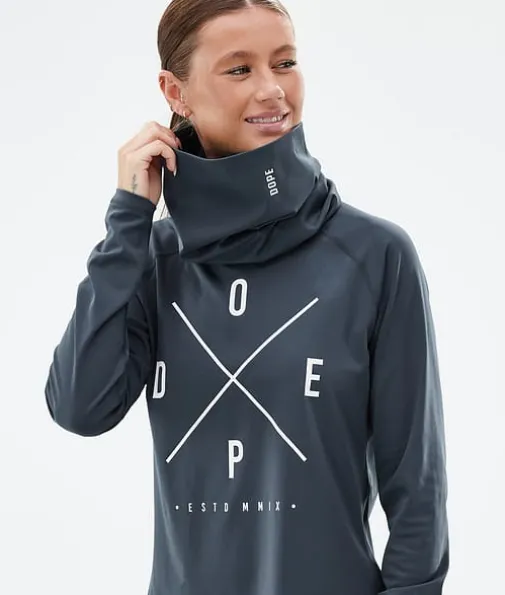 Snuggle W Superundertøy overdel Dame 2X-Up Metal Blue|En ny generasjon med Snuggle-superundertøy er den perfekte følgesvennen når du skal ut på vintereventyr. Snuggle er laget med en ekstremt stretchy blanding av spandex og polyester, som puster svært godt, og Anti-Odour HeiQ-teknologi. Snuggle er klar for selv de mest aktive dagene på fjellet. Den har en minimal turtleneck-krage for å holde bedre på varmen i kaldt vær, og en ekstra separat halsvarmer som gir optimal allsidighet, så du kan holde deg varm og god eller lett og luftig. Den er nå utstyrt med et forbedret Peached-lag som gir uslåelig komfort, i tillegg til forsterkede flate sømmer som eliminerer gnaging og gir ekstrem slitestyrke. Snuggle-superundertøy er utviklet over flere år, og resultatet er det mest komfortable og funksjonelle du kan få tak i: ut på fjellet hver dag, hele sesongen, og vær fullstendig komfortabel.