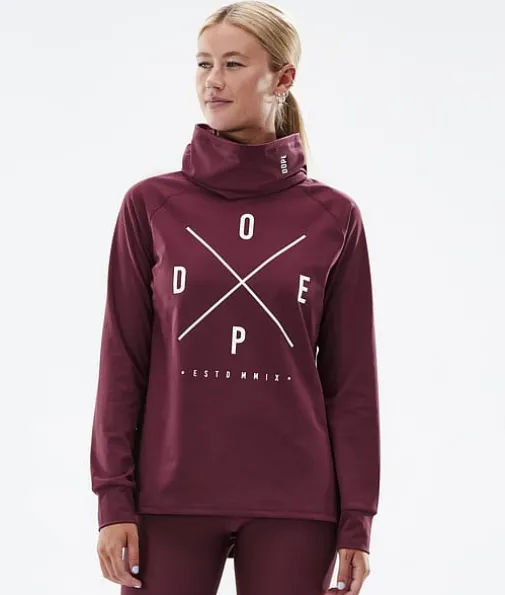 Snuggle W 2022 Superundertøy overdel Dame 2X-Up Burgundy|Snuggle fra Dope er akkurat så snuggly som baselag kan få blitt. Den har en superstretchy og komfortabel poly-spandex konstruksjon med glatt ytterside som aktivt fjerner fukt vekk fra huden, og en myk og børstet innside av fleece som er myk mot huden og holder deg varm dagen lang. Vi har også lagt til noen spesielle Dope tillegg som gjør denne helt perfekt. Den har nemlig en perfekt fit – ikke for tettsittende og ikke for løs. Helt rett for en lang dag i bakkene. Med spandex innholdet, så vil den kunne passe til alle mulige kroppstyper og former uten å gi noe ekstra trykk, noe som betyr komfort for absolutt alle. Til slutt har vi lagt til en rullet turtleneck for temperaturregulering, som gjør Snuggle til en av de aller beste baselagene vi har hatt på lager.