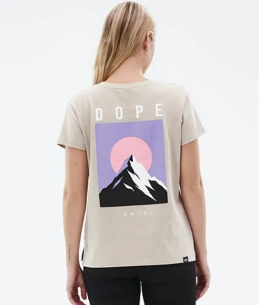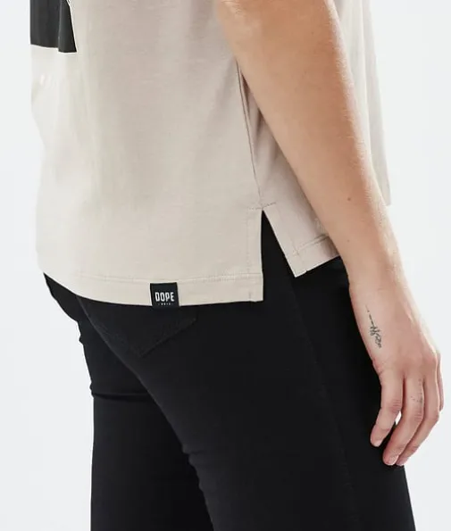 Standard W T-shirt Dame Aphex Sand|Standard-T-skjorten er det perfekte plagget for ethvert eventyr. Den er laget av et supermykt Oekotext 100-sertifisert 260 gsm single jersey-stoff med en 63 % organisk bomull/37 % Tencel-blandingskonstruksjon, og den er også ekstremt slitesterk. Vi gav den vår egen Dope-signaturpassform, og vi slengte i tillegg på favorittdesignene våre for å gi den det lille ekstra. Enten det er som et første kleslag en dag du vil utforske hele feriestedet, eller du er på stranda midt på sommeren, er Standard det perfekte valget hele året.