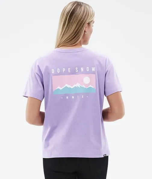 Standard W 2022 T-shirt Dame Range Faded Violet|Standard-T-skjorten er det perfekte plagget for ethvert eventyr. Den er laget av et supermykt Oekotext 100-sertifisert 260 gsm single jersey-stoff med en 62 % organisk bomull/38 % Tencel-blandingskonstruksjon, og den er også ekstremt slitesterk. Vi gav den vår egen Dope-signaturpassform, og vi slengte i tillegg på favorittdesignene våre for å gi den det lille ekstra. Enten det er som et første kleslag en dag du vil utforske hele feriestedet, eller du er på stranda midt på sommeren, er Standard det perfekte valget hele året. Laget i Litauen.