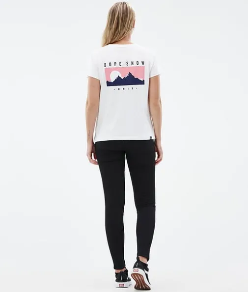 Standard W T-shirt Dame Silhouette White|Standard-T-skjorten er det perfekte plagget for ethvert eventyr. Den er laget av et supermykt Oekotext 100-sertifisert 260 gsm single jersey-stoff med en 63 % organisk bomull/37 % Tencel-blandingskonstruksjon, og den er også ekstremt slitesterk. Vi gav den vår egen Dope-signaturpassform, og vi slengte i tillegg på favorittdesignene våre for å gi den det lille ekstra. Enten det er som et første kleslag en dag du vil utforske hele feriestedet, eller du er på stranda midt på sommeren, er Standard det perfekte valget hele året.
