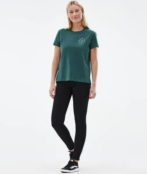 Standard W T-shirt Dame 2X-Up Bottle Green|Standard-T-skjorten er det perfekte plagget for ethvert eventyr. Den er laget av et supermykt Oekotext 100-sertifisert 260 gsm single jersey-stoff med en 63 % organisk bomull/37 % Tencel-blandingskonstruksjon, og den er også ekstremt slitesterk. Vi gav den vår egen Dope-signaturpassform, og vi slengte i tillegg på favorittdesignene våre for å gi den det lille ekstra. Enten det er som et første kleslag en dag du vil utforske hele feriestedet, eller du er på stranda midt på sommeren, er Standard det perfekte valget hele året.