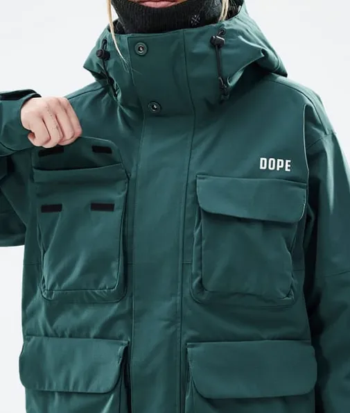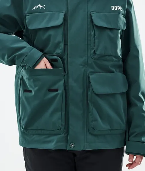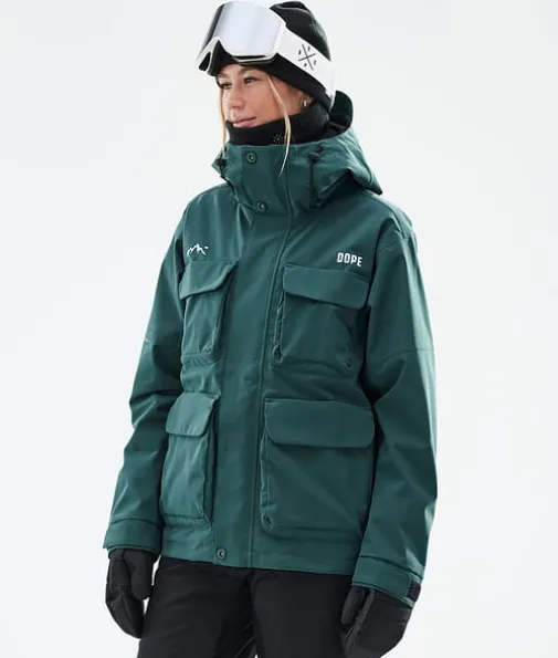 Zenith W Snowboardjakke Dame Bottle Green|Zenith er en jakke i avslappet og baggy stil med fire overdimensjonerte cargo-lommer, ekstremt slitesterkt ytterskall med fireveis stretch og en løs passform med retrovibber. Zenith er inspirert av Legacy-jakken, som har innstillingen at less is more, og denne jakken har det aller viktigste du trenger for en lang dag i fjellet. Den er allsidig og laget for å være på topp hele sesongen, samtidig som det lette designet er med på å sette friheten i førersetet – Zenith er jakken du kommer til å ta med deg i vinter, gang etter gang.